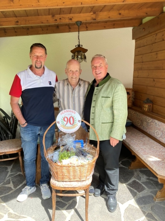 Zum 90. Geburtstag gratulierten im Namen der Kompanie, Hauptmann Hubert Holzbaur und Oberleutnant Mchael Zagrajsek.